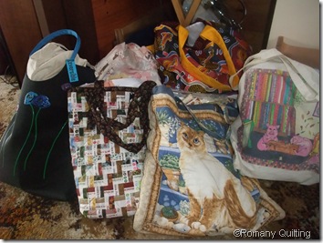 And last but not least, Linda was working on a brand new project, a surprise quilt for her 12 year old son. His interests are soccer and skateboarding, and Linda had all sorts of interesting fabrics on this theme. The pattern she is using is based on “Urban Stripe” out of the current issue of New Zealand Quilter magazine.