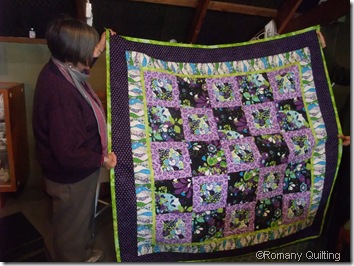 The beautiful old Cathedral Window quilt must be Kathy’s pride and joy, I think, and certainly looks at home in the old church setting. She purchased this quilt quite some time ago, and has loved it ever since. Made by Rosalie Gwilliam of Wanganui in 1981, the label states the quilt took over 500 hours to complete.
